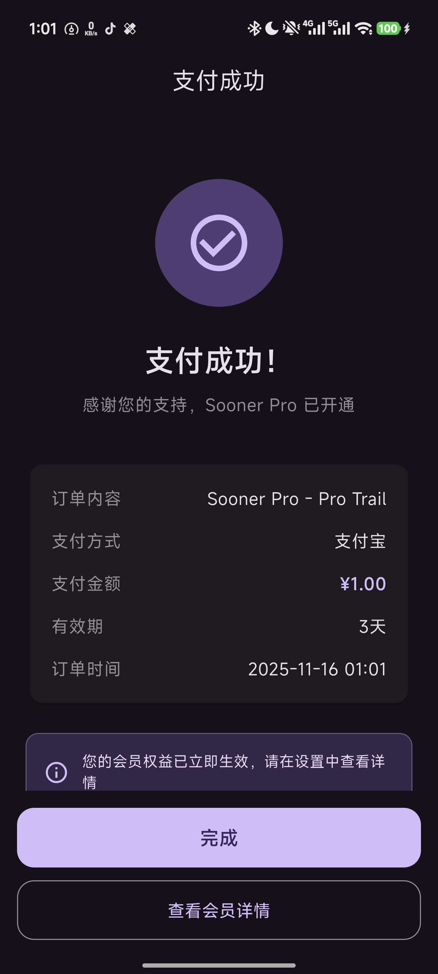 如未到账,请联系开发者。在微信/支付宝支付方式下,不含自动续费。在到期前需手动续费。